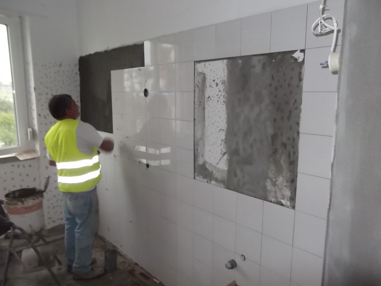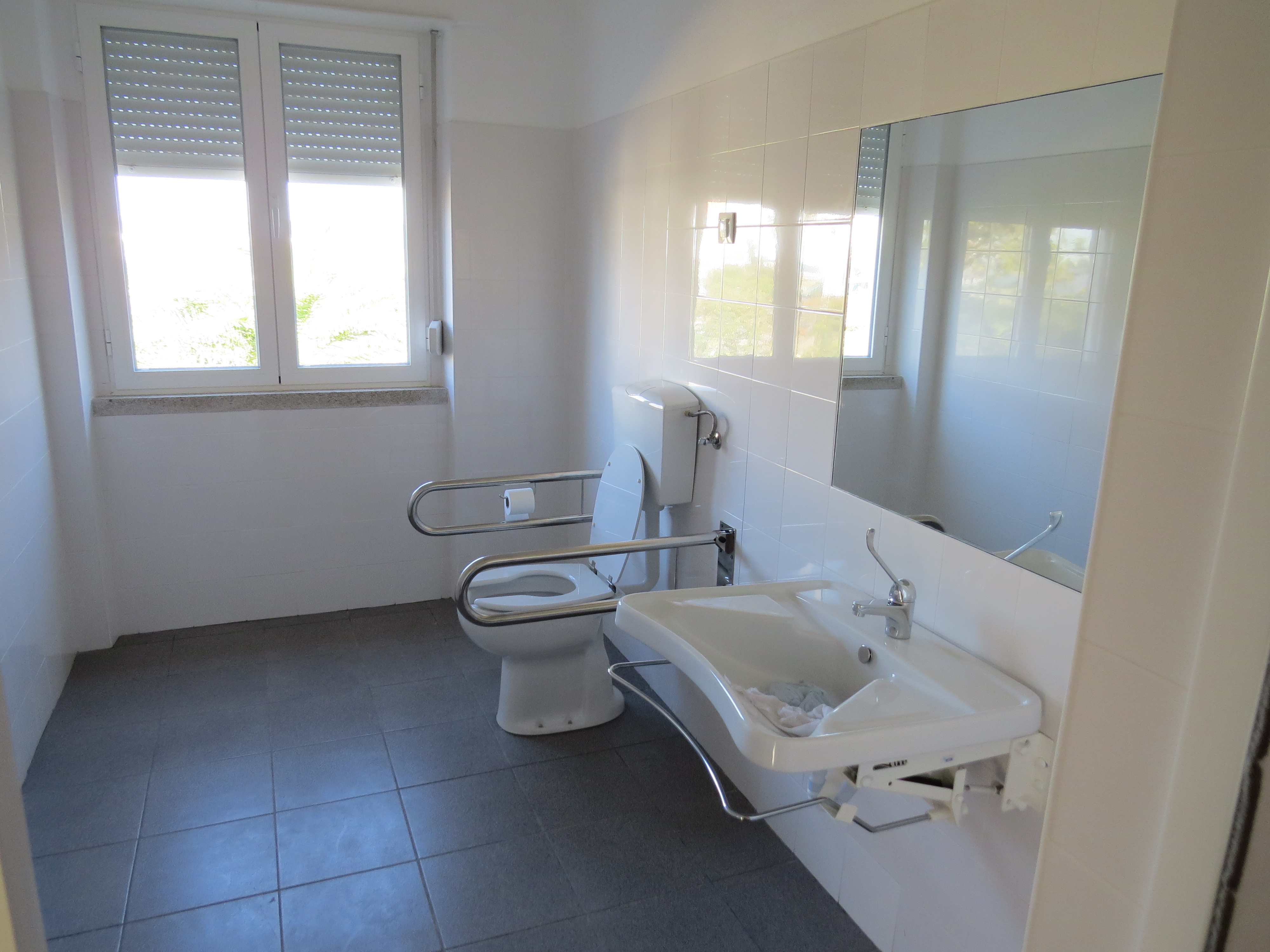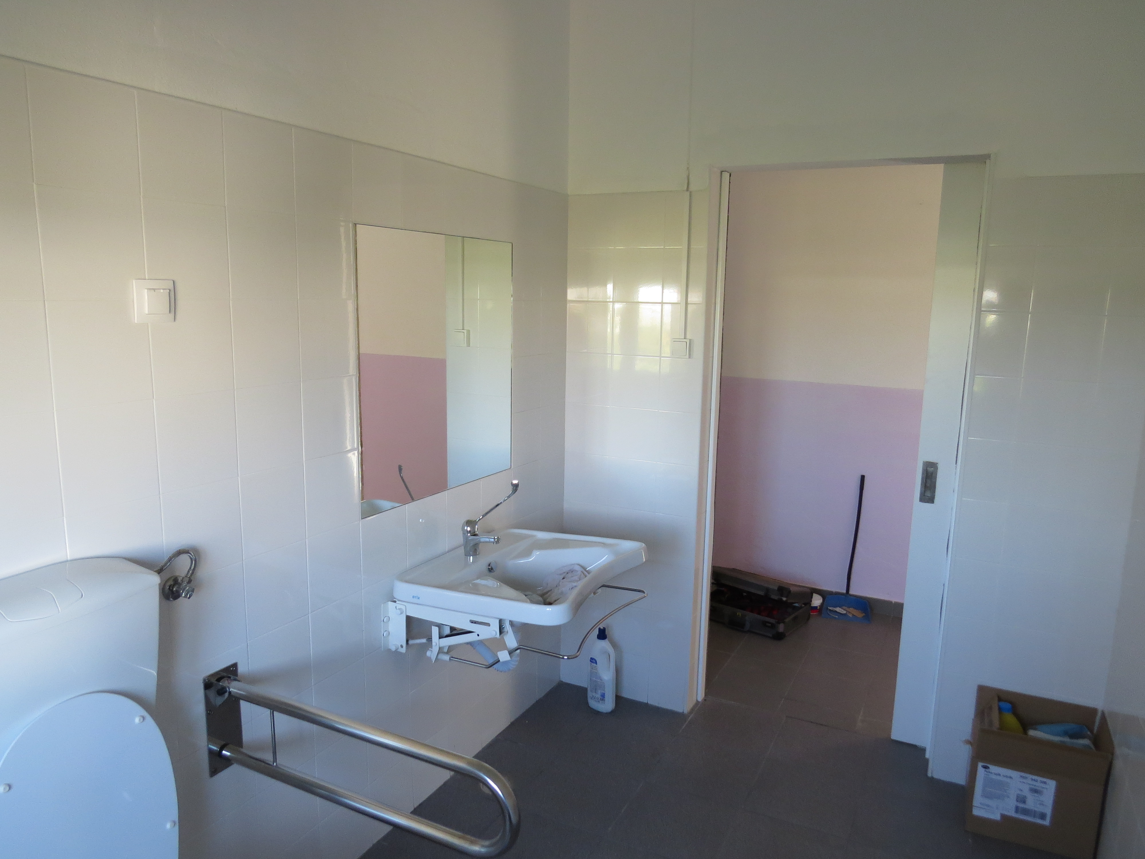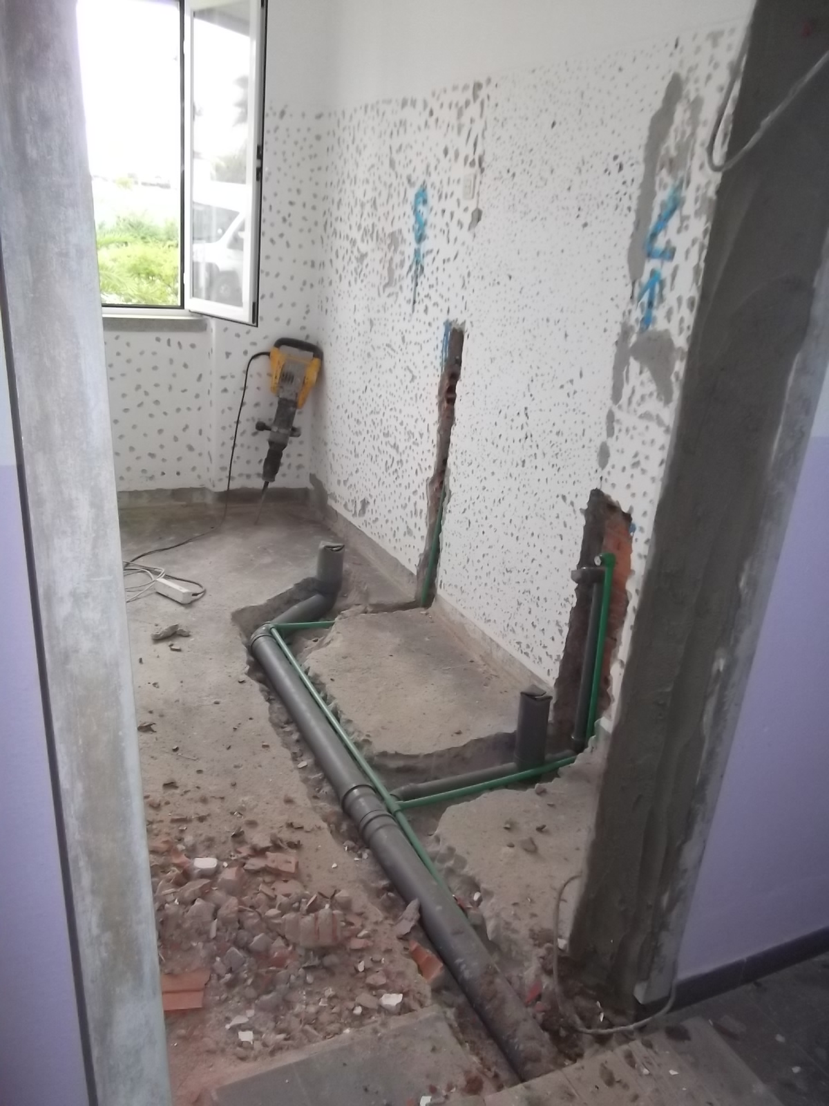 Abertura de roços nas paredes e pavimento, execução de canalizações com ligação ás redes existentes, picagens de paredes, revestimento de paredes e pavimento, instalação de sanitários para acessibilidades, espelhos, pinturas e fornecimento e montagem de portas de correr.